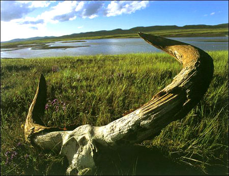 随后,才珠陪我走访了乡里的几户人家。52岁的才三是唐古拉山乡第一农牧业社的书记,他用简单的汉话告诉我,家里8口人养了92头牦牛和800多只羊,最近又新买了东风牌大卡车和摩托车,现在生活好多了。当我们走进白马多杰的家时,他的妻子正在打酥油茶,热乎乎,香喷喷的茶香不仅充满了干净整齐的藏式土房,而且屋里也显得暖和了许多。热情的主人听说我是从北京来的,说什么也要我多喝几碗他的酥油茶。 作为中国五个生态移民试点省份之一的青海省,继2004年在黄河源头启动“退牧还草与生态移民”工程之后,当年8月又在长江源头沱沱河启动这项工程,按照规划这里在未来10年内禁牧。 当我爬上高高的铁路路基,展望新修的铁路,蓝天白云下,青藏铁路就像凌驾于高原之上的一道美丽彩虹,而那笔直的路轨,横跨于宽宽的沱沱河上,就像一把天赐的利剑刺向远方,直至天边。 |