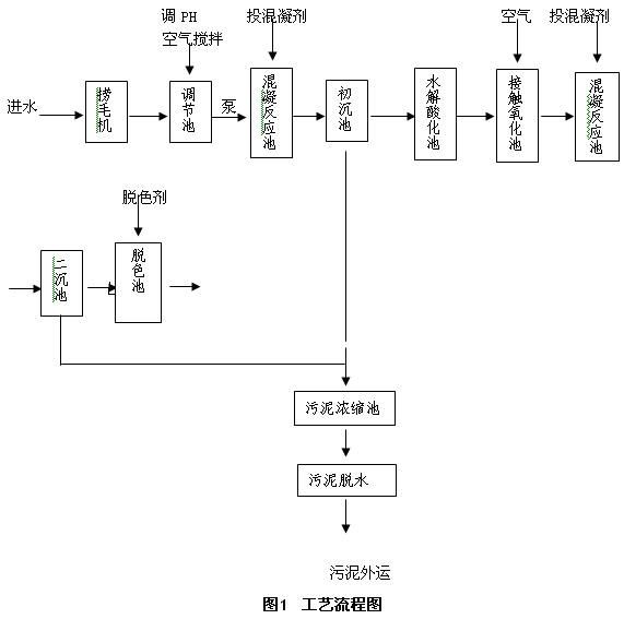 | 水解酸化-接触氧化-物化工艺处理印染废水 |