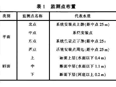 图2:体统调试后 2.3监测方案 2.3.1监测目的 (1)通过对各监测点的连续观测,了解DO、叶绿素、透明度、COD、TN、TP、NH3-N等指标随时间的变化规律,考察系统对各指标的作用效果。 (2)通过断面上不同深度监测点的设置,了解DO、叶绿素在水中的分布情况,考察系统对2项指标均匀性的作用效果。 2.3.2监测点布置 平面设置4个监测点,每个监测点在垂直断面上各设置3个点,具体如表1所示。