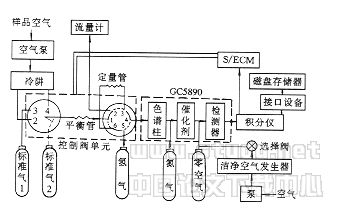 1 引言 近百年来,大气中温室气体含量的增加及其可能导致的气候变化和生态环境问题,已引起人类社会日益广泛的关注,对主要温室气体——CH4和CO2本底浓度的监测就显得十分重要[1].科学家们自60年代起开始了对主要温室气体本底浓度的连续监测和研究,并相继在全球的不同经纬度地区建立起主要温室气体的本底监测站网,但这些台站大多建立在岛屿及海岸,导致内陆大气本底观测资料的稀少.1989年起,中国气象局与WMO及全球环境基金组织合作,在我国青海省海南藏族自治州的瓦里关山顶(海拔3816m,纬度36°17′N,经度100°54′E)建立了世界上第一个内陆高原型的全球大气本底监测站CGAWBO(以下简称瓦里关本底台).在进行温室气体/大气臭氧/降水及气溶胶化学/太阳辐射和气象观测的所有全球大气本底观象台中,它的海拔最高,具有开展大气本底监测较为理想的自然地理环境.在严格的国际检验比对技术基础上,使用先进技术设备建立起较为系统完整的大气本底监测体系,填补了WMO/GAW监测网在欧亚大陆腹地的重要地域空白[2,3].采用气相色谱法大气本底基准监测技术的GC-CH4/CO2连续观测是其中的一个重要监测项目,这种高度定型的装配有氢火焰离子化检测器(FID)的GC系统是在1981年发展起来的,它对CH4的测量精度是目前实际应用的连续观测方法中最好的,对CO2的测量精度已经接近通常用于CO2测量的红外吸收技术(NDIR)的精度水平,据报道,这种GC系统还成功地应用于对大气中微量气体如氧化亚氮和氟里昂的监测[4—7].瓦里关本底台的GC系统由AES根据中加双边大气科学合作协议援助提供,中方业务 人员在AES接受培训,并对系统进行了组装调试;1994年7月系统运抵瓦里关山观测基地,由中加双方的专家共同完成安装,对瓦里关山大气中的CH4和CO2浓度进行连续测量,开始系统的业务运行. 2 仪器系统及测量方法 该系统主要包括:装配有FID和HP19205A镍催化剂管的HP5890(Ⅱ)型气相色谱仪;HP3396Ⅱ型积分仪及HP样品/外部事件控制器(S/ECM);带有HP82169C HP-IL/HP-IB接口的HP9122C型磁盘驱动器;用HP19238E阀加热器保持恒温的4路选择阀和6口进样阀;保存于高压铝瓶和钢瓶内的两个标准气、高纯氮气、高纯氢气;合成空气发生器.图1是系统工作流程的示意图.