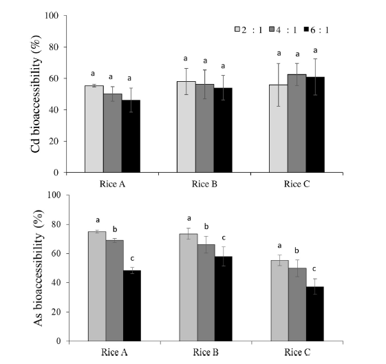 图1:3种不同污染水平大米中镉和砷的生物有效性