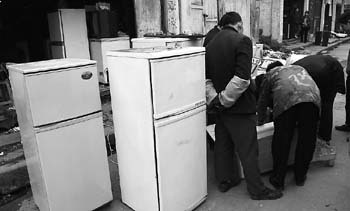 以旧翻“新” 翻新 没有保修卡照样好卖 江北区观音桥家乐福后面有一个专事废旧家电回收和维修翻新的“部落”。在一家小店里,正在埋头修理旧冰箱的小伙子对记者说:“在这附近,干这一行的不下20家,每家每户都不愁活干。”他们将旧家电翻新后,旧货市场的老板会上门来收货,再批销到农村。 记者暗访了位于观音桥的旧家电交易市场,这里云集着几十家经销旧家电的店铺。记者随意走进一家旧货店,发现屋子里各种牌子的彩电、洗衣机、冰箱、空调琳琅满目,店主似乎并不讳言,这些外表光鲜的家电都是旧货翻新的。三个外地口音的人正在和店主讨价还价,说是要买一批21英寸的长虹、康佳彩电,最后以每台400元成交。 记者问那几个外地人,要这么多21英寸的小彩电做什么?其中一个人告诉记者,他在长寿区黄石镇有个小店,这个型号的彩电在农村很好卖。记者问:“这些都是旧彩电翻新的,连说明书、保修卡都没有,农民愿意买吗?”外地人回答:“农民只要能看得清图像,价格便宜就行。”记者又问,要是看不了多久就坏了怎么办?外地人说:“几百块钱的东西,还不是用两年就扔了算了。” 回收 旧货交易真热闹 “收旧彩电、冰箱、空调喽!”居民区一年365天都可以听到这样的吆喝。旧家电回收之后去了哪里?在江北区观音桥一个小贩一语道破:“刚收的这台旧彩电,我只花了100块钱,到旧货店可卖150块,净赚50块。旧货店和二手贩子赚得更多,像这台旧彩电维修翻新后,贴上标签,在农村起码卖500块,还俏得很呢!” 在中兴路旧货交易市场,长期有几个外地人屯守,从市面上收购旧彩电,转手倒卖到新疆等地,再“出口”卖到巴基斯坦、阿富汗等国。 “1994年产的普通型25英寸乐华牌旧彩电可卖400~500元/台,与1997年产的普通型29英寸TCL旧彩电同价,还提供上门收购服务!”该市场的袁先生称,由于各类家电商品更新换代快,现已达到日交易量上百台的规模。 据摊主们介绍,中兴路的旧彩电交易量是全市最大的,已经超过朝天门市场。 刘荣从上世纪80年代涉足收购旧家电,发家之地是朝天门,如今是行内公认的大户,曾在石桥铺、杨公桥租了三家企业的仓库储货,其收购数量一度占重庆回收家电份额的三分之二。他说:“1990年和1994年两届世界杯足球赛期间,我销的旧彩电都卖断了货,主要是卖到三峡库区,省外就是广西云南。现在这一行做亮了,杀价太凶了,沿海地区又有很多限制政策,西北的业务又不熟,所以今年基本停止收货了。” 袁刚是刘荣带出的徒弟,从2001年开始就在七星岗一家较大的电器商店收旧家电。虽然穿着商场统一的员工着装,但他说自己并不是商场招聘的,在商场里摆一个收电器的摊,每月缴600元的场租费。“现在每个月大概能收100台左右旧电器,在这家电器商场的8个店里,算中等。杨家坪和沙坪坝的店比较好,每家都能收上200台。” 袁刚说,他以前也跑过游摊,游摊的许多做法都有害环境,如拆旧空调时,咔嚓就把铜管剪断,任氟里昂排到空气里。“现在我们都要将氟里昂回收后再拆空调。在重庆的电器商场中,国美是第一个明码实价公开回收旧电器的,当然要求更专业更规范。” 法规1 乱扔乱卖也违规 今年9月,国家发改委公布了《废旧家电及电子产品回收处理管理条例》征求意见稿,并于10月31日结束公示上报国务院批准,将在近期正式颁布实施。 关于我国首部电子垃圾法案的出台,重庆市固体废物管理服务中心管理部经理王雪飞给予了解读。 目前大多数市民对废旧家电的处理,往往都会选择随手把它扔掉或者卖给私人回收旧家电的。但《条例》正式实施以后,这些做法就将是违规的。 《条例》规定,废旧家电不能随便乱扔,消费者应将废旧家电交售给家电经销商、售后服务机构或回收企业,再由这些企业交给有资质的处理企业。经测试、维修并贴上再利用品标识后,才能在旧货市场销售。家电经销商和售后服务机构拒绝消费者交售回收废旧家电的,最高可处10万元以下的罚款。 王雪飞认为:“对于这些新规定,市民和环保部门非常欢迎。但我们目前认为它仅有指导性,还缺乏强制约束力,因为一系列配套的政策需要跟进。” 法规2 回收费用谁埋单 家电企业表示,以目前仅有的5%左右的利润,实在难以承受家电回收的费用。因此,国家环保总局在青岛“试点”期间,废旧家电回收点曾经试图向废旧家电所有人收取每件50元的费用,最终却以失败告终。谁埋单显然是废旧家电回收面临的难题。 在废旧家电和电子垃圾之间,现在还没有划一道明显鸿沟,关键是对各类家电的使用寿命国家应以法律明确规定年限,超过年限一律回收拆解。重庆再生资源协会秘书长余兆机接受记者采访时说,资源再生与旧货流通是两码事,报废的家电或许还有利用残值,但只要过了寿命年限就应视为电子垃圾,该拆的拆,该回炉的回炉,该填埋的填埋。 记者在市环保部门了解到,去年我市已规划在璧山、长寿建立两座危险废物处理场,年处理能力分别为3万吨、2.8万吨,主城区的危险废物主要由璧山处理场处理。但因为在投资回报、税收减免等方面政策不明朗,资金来源存在问题,危废处理场迟迟未动工。 余兆机说,去年,本市历史最久、规模最大的重庆物资回收总公司改制为重庆物华再生资源有限公司,已先期取得对报废汽车的回收拆解资质,现在这一块业务发展势头很好。“物华公司一直在