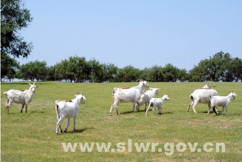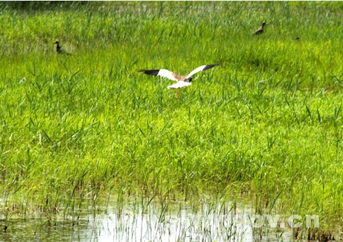 保护区内的牛羊群 2004年7月21日,当2000多万方引察济向的生命之水汩汩奔到向海湿地的时候,记者再次前往向海,此时的水已积蓄向海二场,不断涌入记者镜头的是灵魂之水神雕出的湿地生态新貌。 一望无际的水面、生长旺盛的植被、纷飞前往保护区安家的野生禽类与当地笑逐颜开的人们……勾勒出向海湿地生机盎然的美好景象。 在这里,你会透彻地感觉如沐春风; 在这里,你会看到水是湿地的灵魂; 在这里,湿地是人类赖以生存的资源已体现得淋漓尽致…… 今天,我们从这里已经看到 :"人与自然和谐相处"理念指导与具体实践下的可喜成果…… 明天,我们必信:在科学发展观指导下的"引察济向"工程,定会让向海湿地生机永存! (赵晓瑞 郑秀文摄影报道) |
