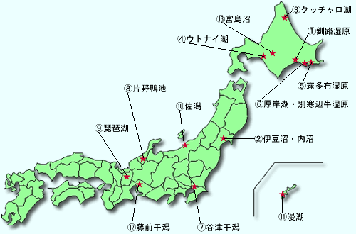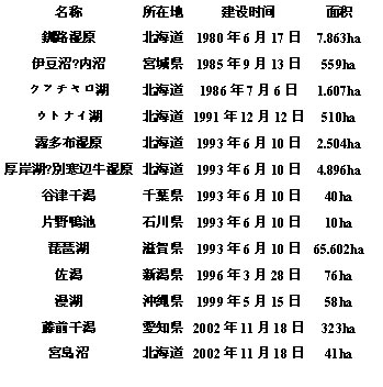 | 日本湿地的分布图 | |||||