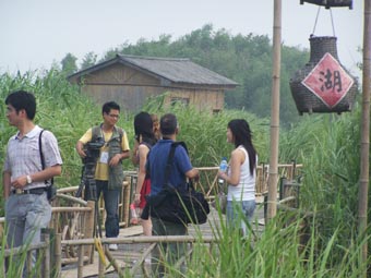![]() 渚湖竹茶楼 中新浙江网5月29日电 (记者柴燕菲童静宜)湿地素有城市之肺之称,它最能反映一个城市的生态环境和谐与否。二十八日下午,连线浙江欧洲记者团考察采访了浙江德清下渚湖湿地。 下渚湖湿地位于浙江德清县武康镇的附近,有江南最大湿地风景区之称。湿地历经数千年岁月风雨,目前仍然为保存完好的“观赏性”湿地。它的那份古朴原始的宁静,那种水天一色的景色在江浙一带并不多见。 用“风景如画”来形容下渚湖的风光是很恰当的。船行之中,湖面或开阔如漾,水天一色;或狭窄如港,汊道曲折,遍布湖荡的岛屿沙渚土墩形态各异,,湖中有墩、墩中有湖,港中有汊,汊中有港,水网交错。欧洲记者们或抢拍着少见的这个卧于绿野、羞于面世、沉默而含蓄的下渚湖美景;或立于船头深深的呼吸着清新的空气;或在船中闭目静静地享受着这份平和宁静。“真美,好想在这里沉沉睡上两天。”西班牙记者吉玛陶醉地闭上眼睛,哼起了歌。 下船后,一条长长的竹甬道把我们引向竹茶楼。这种以竹为原料制作的竹桥、竹甬道、竹亭、竹楼,造型别致,与此湖的生态环境极其和谐。赞叹、惊叹之时,又见一个穿着对襟蓝印花布围裙的姑娘,给我们每人端上一道青豆迎客茶。透过袅袅的茶香,朦胧地看见才熏好的青豆乖巧地躺在蓝瓷小碗里,绿盈盈的茶叶慢慢地翻滚,浅啜一口,还有清润的陈皮香味,疲意顿消。在听上几段古筝、笛子演奏,真有“偷的浮生半日闲“之感。“真想在这多呆几天,景色自然而美丽,在这感觉一身轻松。”匈牙利布达佩斯电视台总编纳吉斯达克喝着茶说,这里保持如此原生态,真不容易,希望当地政府能够能够保持这里环境的和谐。 “德清风景美,工业也发达,我认为这是一个很好的投资环境。”带着在中国选择投资环境任务而来的瑞典MCN制作公司编导尼斯特罗姆告诉记者,此次他过来拍摄的片子将在当地电视台播放,通过这些片子,瑞典当地的投资家将选择浙江那里适宜投资,并在九月份再次来浙江调研。他说,在德清他一直不停的拍,这里的景色非常优美,一路看来周边的工业也很发达,一个将人和自然和谐起来的地方,他个人认为是一个很好的投资环境。 同时他告诉记者,他之前认为中国在城市化进程中,是以牺牲环境为代价的。但今日看了德清之后,他的观念在改变。“浙江的城市化已经走上人和自然和谐发展的道路。”(完) |