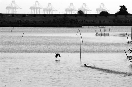 图:南沙新垦的湿地保护区,不远处就是南沙货运港口。