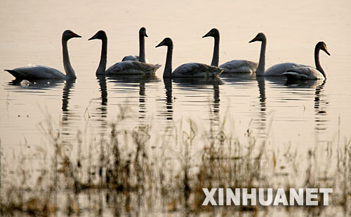 2007年11月20日,几只白天鹅在水中栖息。 进入冬季以来,数千只白天鹅陆续从西伯利亚迁徙到山西省平陆县黄河湿地栖息越冬,平陆黄河湿地成为美丽的“天鹅湖”。 新华社发