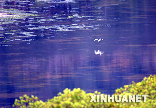 一只白鹭在美丽的三亚红树林保护区的河面上飞过(摄于2007年1月20日)。 海南岛四周海岸有大面积的沿海滩涂,中部山区有茂密的原始热带雨林,良好的湿地生态为鸟儿们提供了理想的生活环境。 新华社记者 姜恩宇 摄