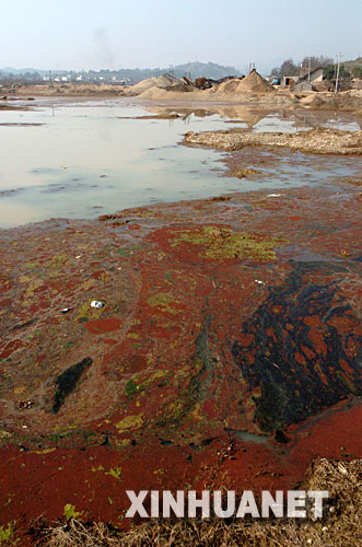 这是新安江源头河流因砂石大量开采,造成水流不畅,污水聚集(2008年1月5日摄)。 新华社记者 宋振平 摄 地处新安江源头的安徽省黄山市休宁县,是皖南生态保护区的一部分。近年来,由于一些重点建设工程和当地经济发展对砂石的需求量越来越大,该县对境内新安江源头的两条主要河流的砂石资源进行过度开采,沿河水体生态链和周围环境受到影响。 新华社记者 宋振平 摄