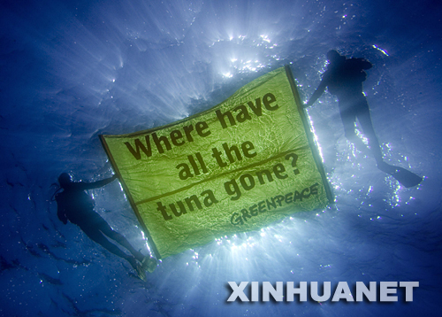 2006年6月15日,在西班牙巴利阿里群岛附近海域,两名绿色和平组织成员手举写有“金枪鱼全都哪儿去了”的条幅潜入水下,以呼吁人们关注并保护日渐稀少的金枪鱼。 环境恶化、气候突变、冰川消融、海面上升……这些并不只是少数人才应该担忧的问题,地球家园与我们每一个人息息相关。在环境问题日益严峻的今天,我们是否应该静下心来想一想,还能做些什么以拯救地球和我们自身? |