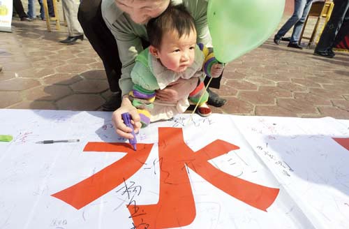 水是人类生存与发展的基本条件。中国西北地区是世界上缺水最严重的地区之一,随着人口增加和经济发展,水已成为制约西部经济社会发展及生态环境改善的主要因素。 3月22日是第十五个“世界水日”,联合国确定今年“世界水日”的宣传主题是“应对水短缺”。记者将近年来在缺水较为严重的地区拍摄的真实镜头奉献给读者,希望能够让我们更多地了解在我们身边一些地方的人们是如何渴望得到水,他们为了一滴水又付出了多少艰辛…… 如何应对日益短缺的生命之水,拯救地球生命之液?让每一个人养成良好的用水习惯,做到珍惜每一滴水才是我们对生命之水最好的承诺。(蒋生连 陈明哲)