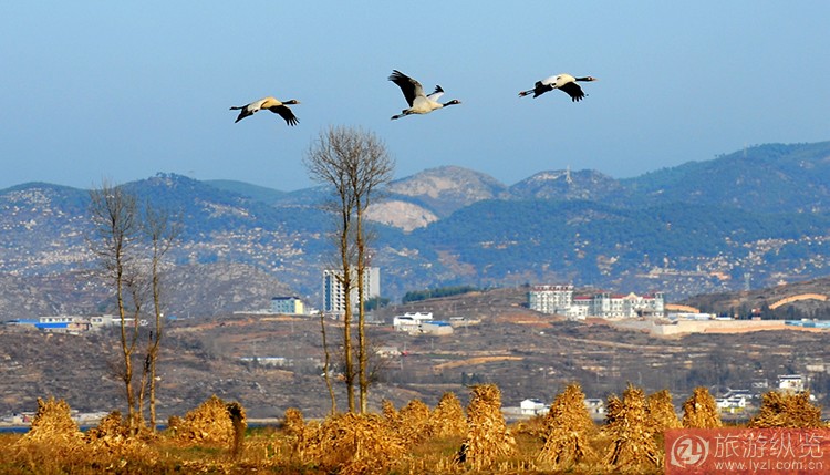 迁徙前的黑颈鹤精神最抖擞,精力也最集中。英姿焕发的黑色精灵们,在它们“首长”的指令下,试飞、爬升、巡航、减速、下降、滑翔、着陆,一次又一次的演练,积累了丰富的飞翔技能,同时,也锻练了体能。大多黑颈鹤经历这一连串的飞行动作训练后,具备了远程迁徙的能力,终于在某一天,奋力起飞,在越冬地集合盘旋近一个多小时,这也算是对越冬地人们的告别与感激,然后它们开始爬升,慢慢远离人们的视野,向繁殖地进发了。