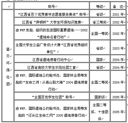 2004年11月,“蓝天”环保社团被江西省教育厅评为“江西省高校示范社团”。