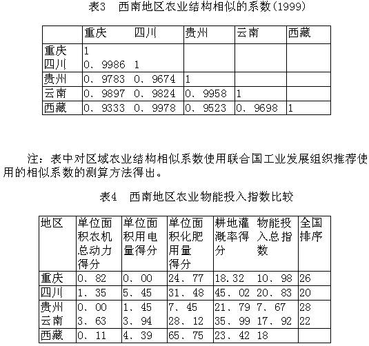 一、引言 我国西南地区(1)具有丰富的农业资源和较为适宜农业生产的自然环境。但同时,西南地区也是我国农業相对落后的地区之一。1999年,党和政府实施西部大开发后,西南地区农业有了长足的发展,粮食生产稳步增长,农业结构得到了调整,农民的收入也有了较大幅度的提高,农民生产和生活得到了较为明显的改善。然而,西南农业相对于东部仍然比较落后,其原因是由于西南地区农业资源开发得不够,因此,笔者认为,以科技进步与创新为根本动力、大力发展生态农业、旅游观光农业、特色农业应是西部农业持续发展的主要思路。 一、西南地区农业的环境特点 1.水能资源丰富。西南地区地面水资源丰富,其水能资源居全国之首,潜在的可开采能力占全国的68%左右。全国的主要河流的发源地大多在西南地区或流经西南地区,并有着大量的湖泊及水库等水利设施,国内水利发电工程也大多在西南地区。同时,西南地区雨水充足,全年的降水量是全国平均水平的3倍。人均、亩均分摊的水量均居全国第一。因此,西南水能资源具有巨大的开发前景,水能资源本身的开发也是西部大开发中的一项重点。 2.旅游资源丰富多彩。西南地区是我国旅游资源尤其是精品旅游资源最富集的地区,具有特色鲜明、种类多、分布面广等特点。其旅游资源的种类主要有:瑰丽多姿、秀甲天下的山水奇观;气势超群、形肖神似的峰林和山地景色;鬼斧神工的岩溶洞穴景观,惊心动魄的瀑布奇观;富含多种矿物质且有益于人体健康的冷、热、温、奇泉:绚丽多姿的滨海风光:浩瀚林海的森林公园;种类繁多的动植物;历史悠久的古迹和众多的革命纪念地;古朴浓郁、且多姿多彩的壮、藏、彝、瑶、苗、侗等少数民族,特别是民族风情以及宗教寺庙文化、侨乡风光以及独具魅力的南国边关风貌等。西南地区旅游资源的等级和品位也相当高,且特点突出,其中,有些在世界范围内也具有代表性和垄断性,如举世闻名的重庆三峡风光,云南境内的香格里拉、昆明世博园、西藏境内的“佛教文化”和雪域风情、四川境内的卧龙大熊猫等。无论从自然资源看,还是从人文资源看,都极具开发价值。 3.自然条件优越。西南地区气候类型多样,是我国自然条件最为复杂且较为优越的地区,以亚热带和温带气候为主,雨水丰沛,地形地貌迤逦,海拔落差悬殊,垂直气候差异显著。世界独有的气候条件和地质结构,形成了多种不同的植被群落和生态自然景观。 4.民族特色突出。西南地区少数民族众多,是我国少数民族聚集较为集中的地区之一,我国近八成的少数民族人口定居西南,民族文化丰富多彩。除汉族外,还有藏、彝、苗、布依、白、哈尼、壮、傣、侗、回等30多个少数民族,人口超过2900万,且大多分布在边境地区。在农业上,仍保持着浓厚的民族特色,农业劳动工具极具独特性,农业的产品结构也具有独特性。 二、西南地区农业存在的问题 1.农业生态条件差,农业环境支持系统脆弱。西南地区自然条件的特点是三多一少,即降水多,山、坡地多,石灰岩地多,人均耕地少。同时滥垦、乱伐、粗放经营耕作方式使农业生态环境支持系统十分脆弱(见表1)。长江上中游地区的生态环境复杂多样,水资源充沛但保水保土能力较差,多高山峡谷,少平坝,人均耕地少,且旱地坡耕地多。长期以来由于不合理的耕作、草地过牧和大量采伐森林,水土流失日益严重。滇、黔等石质山区降雨量大,滑坡、泥石流灾害频繁,不少地区因土地“石化”导致贫困。 2.农业投入严重不足。由于西南地区整个国民经济欠发达,正处于大开发时期,加之地况复杂,导致对农业的投入严重不足。目前,投资的主要来源为国家投资、政府的税收优惠及其有限的扶贫投入。广大农民的收入普遍不高且只能满足日常生活,有些地方的农民甚至连基本生活都无法保证,哪里还谈得上对农业发展的投入。这种农业低水平的投入(见表2)使农业处于自给自足、粗放经营的状态。 3.农业结构存在同构、缺位、低位和错位等缺陷。西南地区农业显现的农业结构性矛盾,突出表现在:第一,农业结构的同构现象严重(见表3)。这种相似的产业结构表现出西南地区农业生产在区域化分工上有所进展,但区域比较优势尚未很好发挥,规模化不显著,专业化分工、区域规模化合作缺乏。区域性结构不同程度存在着大而全、小而全的问题。这种同构现象还表现在农产之间呈现为自给自足或半自给自足的自然状态下有限的农业资源处于一种平均配置状态,使农业系统功能不但难以协调利用,反而相互制约,出现l+1<2的不良现状。第二,农业结构中的产品品质低位。按照传统的狭义品质概念,西南地区农业产品品质距我国日益增长的市场需求标准还存在较大差距,如优质品率不高;按现代的广义品质概念,西南地区农业产品品质距市场需求要求的标准差距更大,其农业产成品更多的是大路货,名优产品比例低。农产品从“田头到餐桌”按照现代质量标准进行规范和标准化的生产和管理才刚起步,有的甚至还是空白。 5.科学技术还没有真正成为农业强有力的第一生产力。西南地区在农业物能投入(农机、农电、化肥、耕地灌溉等)上总体水平偏低(见表4),农业生产的科技含量偏低。 三、科技进步和创新是西南地区农业持续发展的原动力 科学技术是第一生产力。科技进步与创新是推动生产力发展的
