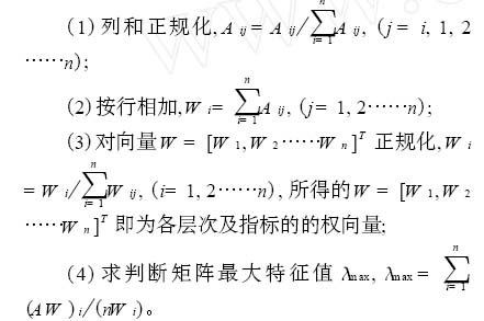 判断矩阵的最大特征值和特征向量通常采用和积法进行计算, 设两两判断矩阵为(A?) , 则计算步骤为: