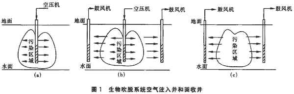 1 生物吹脱技术 生物吹脱是通过空气压缩机等设备向土壤中注入空气,将原有的空气赶走并为微生物提供氧气,利用细菌等微生物的降解作用来减少土壤污染(见图1)的。