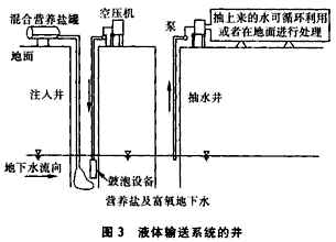 3 液体输送技术 液体输送处理技术与传统的污水处理有类似之处,电子受体通常是氧气,并加入营养物质以 强化生物反应器中污染物降解过程,但不像污水处理那样是在有限的、容易管理的生物反应 器中进行,而是在无限的、无法预测的生物反应器中进行处理(见图3)。