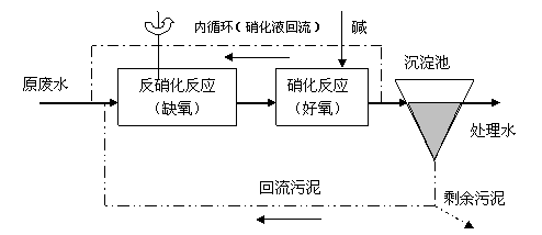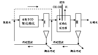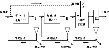 摘要:本论文介绍几种常用的生物化脱氮工艺,其中有传统脱氮工艺, A/O法, 氧化沟生物膜法, SBR法, DAT-IAT工艺等几种。 废水生物脱氮工艺的研究始于1930年,Wuhrmann在生物滤池的深处确认了硝化脱氮反应,从而建立了“脱氮菌还原硝酸盐作为供氢体有效利用细胞内物质的生物脱氮法”,即Wuhrmann处理法。1960年Bringmann开发了外加碳源的生物脱氮工艺。通过实际的运行及技术的不断改进,近20多年来又开发和提出了以A/O、Bardenpho等为主的新型废水生物脱氮工艺,并不断地在实际工程中得到推广应用。这些工艺从碳源来说,可分为外加碳源工艺和内碳源工艺;从硝化和反硝化过程在工艺流程中的位置,可分为传统工艺和前置反硝化工艺;从处理工艺中微生物的存在状态,可分为悬浮生长型和附着生长型。常用生物脱氮工艺介绍如下: 1.传统脱氮工艺 活性污泥法脱氮的传统工艺[1]是在1969年美国的巴茨(Barth)提出的,被称为三级活性污泥法,是以氨化、硝化和反硝化3步反应过程为基础建立起来的。活性污泥含有有机物降解菌、硝化菌和反硝化菌,它们分别在各自的反应池内生长繁殖,并且有各自的沉淀池和回流设施,如图1.2所示。在实践中还可采用两级生物脱氮系统(如图1.3所示),将前两级BOD去除和硝化两道反应过程合在同一反应器内进行,第一级池去除BOD,将有机氮转化为NH3、NH4+,同时使NH3、NH4+进一步氧化成NOx--N。第二级池在缺氧条件下,将NOx--N还原为氮气,并逸出大气,应采取厌氧-缺氧的运行方式。碳源,既可投加CH3OH(甲醇)作为外加碳源,亦可引入原废水作为碳源。该工艺优点反应速率大,而且比较彻底。缺点是处理设施多,占地面积大,造价高,管理不够方便,因此在实践中采用比较少。