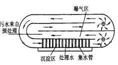 3. 氧化沟 氧化沟是上世纪50年代由荷兰巴斯韦尔(Pasveer)开发出来的一种废水生物处理技术,属于活性污泥法的一种变型[4]。其基本特征是曝气池呈封闭、环状跑道式,废水和活性污泥以及各种微生物混合在沟渠中作不停地循环流动,完成对废水的硝化与反硝化处理。生物氧化沟兼有完全混合式、推流式和氧化塘的特点。在技术上具有净化程度高、耐冲击、运行稳定可靠、操作简单、运行管理方便、维修简单、投资少、能耗低等特点。氧化沟在空间上形成了好氧区、缺氧区和厌氧区,具有良好的脱氮功能。以卡鲁塞尔氧化沟为例,其是在每组沟渠的转弯处安装一台表面曝气机,靠近曝气机的下游为富氧区,而上游为低氧区,外环还可能成为缺氧区,这样形成了生物脱氮的环境条件。目前常用的氧化沟主要有多沟交替式氧化沟、卡鲁塞尔氧化沟、奥贝尔氧化沟、一体化氧化沟(见图1.5)。 a 多沟交替式氧化沟 b卡鲁塞尔氧化沟 c奥贝尔氧化沟 d一体化氧化沟 图1.5 氧化沟 Figure 1.5 oxidation ditch