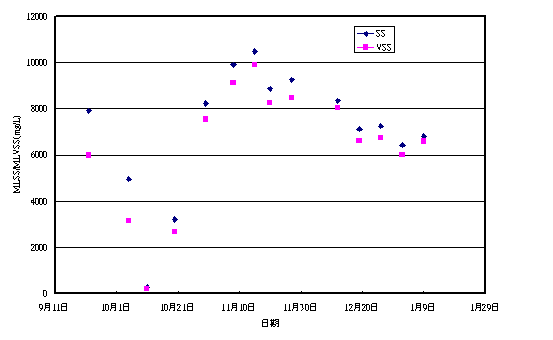 圖6 MBR模型廠MLSS及MLVSS濃度變化 4.2槽中MLSS變化 MBR處理廠起動初期之MLVSS約為2,000mg/L左右,開始操作兩個月後,並未進行排泥動作,污泥濃度增加至5,000mg/L。由於在高污泥濃度下操作是MBR特色之一,反應槽中污泥仍有增加之趨勢,提高污泥濃度除可維持高效率處理特性外,在污泥產率方面,亦較一般活性污泥系統之污泥產率(0.2~0.3 kgSS/kgCODr)低,可大幅減少廢水處理場污泥量產生。 三、結論與建議 MBR處理系統經過模型廠與實廠驗證後,具有高體積效率、低污泥產率及操作簡單等優點,相當適合產業界需求,尤其是土地資源有限、污泥處理費用節節高昇及人工成本高居不下之情況,MBR提供一個有效解決之道。事實上,近年來此技術蓬勃發展,逐漸受到環保業及產業界重視與接受,儼然成為革命性環保技術。國內由於土地及人工成本高,MBR技術具有應用潛力,亦逐漸受到業界重視,但由於MBR技術層次高,故建議業者再採用此技術時,需進行可行性評估,以確保技術可行性及避免投資浪費。 |