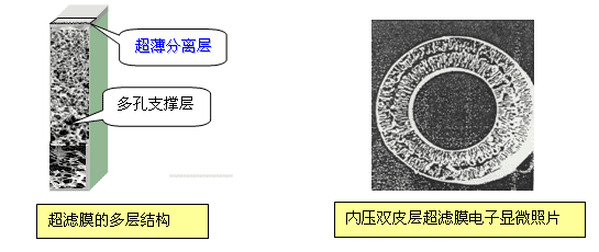 超滤膜属于非对称的结构,即包括致密的皮层(真正起分离作用)和多孔的支撑层。这种结构既保证了良好的分离效果,又提高了膜通量,降低运行能耗,并抗污堵。这些因素使得膜产品最终能够实现大工业化的应用。目前在青岛、山西等地多个热电厂的锅炉给水系统中已经成功采用超滤做为反渗透的预处理。