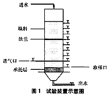 邱立平,马军 摘 要: 通过小试研究了曝气生物滤池实现短程硝化反硝化的效能和机理。试验结果表明,曝气生物滤池在滤速为1~2m/h、气水比为3∶1、水温为21~26.5℃、进水COD负荷为1.18~5.57kg/(m3*d)、NH3-N负荷为0.26~0.62kg/(m3*d)、TN负荷为0.28~0.63kg/(m3*d)的条件下可以取得良好的去除有机物和脱氮效果。试验中还发现,反应器中出现了明显的NO2-积累现象,并表现出显著的短程硝化反硝化特征,进行机理分析后认为曝气生物滤池的结构特征和运行方式是其能够进行短程硝化反硝化的主要原因。 Study on the Mechanism of shortcut Nitrification-Denitrification in Aerated Biofilter Abstract:Study was made on the efficiency and mechanism of shortcut nitrification-denitri fication in aerated biofilter.The test result showed that good effect of organic and nitrogen removal can be achieved at filtration rate of 1~2m/h,air/water ratio of 3∶1,water temperature of 21~26.5℃,influent COD loading of 1.18~5.57kg/(m3*d),NH3-N loading of 0.26~0.62kg/(m3*d),TN loading of 0.28~0.63kg/(m3*d). Furthermore, the obvious NO2-accumulation and shortcut nitrification-denitrification were found in the biofilter.After analysis of mechanism,it was believed that the structural feature and operational mode were the principal causes for the shortcut nitrification-denitrification occurring in the biofilter. 曝气生物滤池是一种新型污水生物处理技术,具有占地面积小、处理效率高、能耗较低等特点,可进行模块化应用,在对有机物、SS和氮的去除等方面具有良好的效果[1]。 1 试验装置与方法 1.1 试验装置