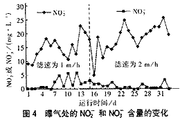 图4曝气处的NO2-和NO3-含量的变化 3 短程硝化反硝化 ①含氮化合物的空间变化