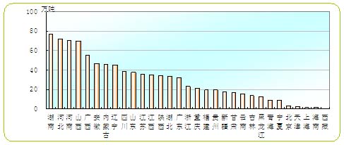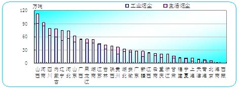 图28 各省(区、市)烟尘排放量排序