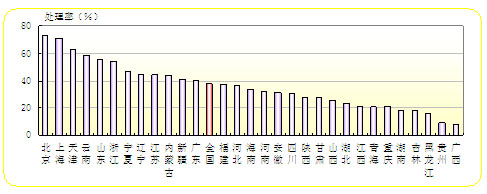 图41 各省(区市)城镇生活污水处理率