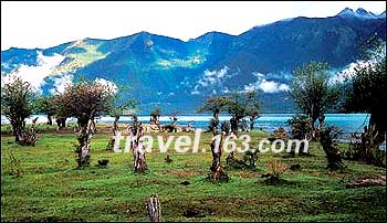 岸边不远处,一些树遒劲而柔韧地在水中挺立着、摇摆着、舒展着。午后的花园静悄悄的,阳光暖暖的。漫步在林中小道,有如置身世外桃源,道两旁四五米高的、红艳艳的、铃铛似的杜鹃花开得正盛。赶上野草莓的季节,摘几颗,蜜汁浸齿,香溢舌间……你也可以把大部分的时间都花在发呆上:坐在开满紫红色鲜花的餐厅院子里,要一壶奶茶,抱上一本书,在太阳下打个盹,轻松地度过一个下午,直到眼前的雪山被夕阳点燃。 旅游提示 ■交通 从拉萨出发,4个小时就可到巴松措。全程约360多公里,皆为柏油路,巴河至度假村的黑色公路也已修通,可能算是川藏线西藏段最好的路了。惟一要小心行驶的路段是海拔5000多米的米拉山口。 从拉萨租车往返约需2600元,旅游班车往返约需240元人民币,途经米拉山口、工布江达县,再走约90公里就可到达巴松措。如果是从成都走川藏线过来,也可在林芝县政府所在地八一镇租车到巴松措(全程大约128公里左右),往返约需320元。 ■住宿 这里的度假村完全可能让人找到“休闲在西藏”的感觉。别墅、平房,还有日式睡房,电话直通国内外,还能收看到12套电视节目。 5月,中国移动刚刚在这里开通了手机信号。在茶院可以欣赏工布风情表演,观湖亭还搭有林卡帐篷…… ■美食 藏香猪、松茸烧罐头、巴河鲇鱼、手掌参炖藏鸡、石锅鸡、山珍野菌等地道林芝美食,不仅味道鲜美,且营养价值极高。 ■门票 110元(包括景区内环保车,到扎西岛的木筏和扎西岛),游艇票80元(3小时,除了游览对岸的求子洞、皇帝的火焰等景致,还可坐车到巴松措湖头,那里是许多徒步线路的起点或终点)。 |