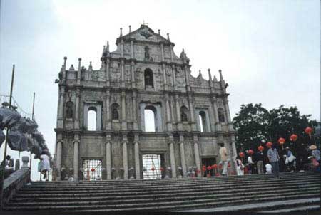 三、澳门历史城区 16世纪中叶,因应中外贸易的新形势,明朝政府划出澳门半岛西南部一片地段,供以葡萄牙人为主的外国商人居住及进行贸易,澳门由此发展成19世纪前中国主要的对外港口,也是亚洲地区重要的国际港口。贸易活动的兴盛吸引了世界各地的人前来,一个融合欧、亚、非、美四洲人民的“华洋杂居”的国际城市由是诞生。葡萄牙人将这个用城墙围起的城市命名为“天主圣名之城”,我们今天的澳门历史城区就是它的核心。 澳门历史城区是中国境内现存最古老、规模最大、保存最完整和最集中的东西方风格共存建筑群。它见证了澳门四百多年来中西文化互相交流、多元共存的历史。亦正是因为中西文化共融的缘故,城区当中的大部分建筑都具有中西合璧的特色。城区内的建筑大部分到现在依然保持著原有的功能。 2005年7月15日,联合国教科文组织第29届世界遗产委员会会议决定,将“澳门历史城区”作为世界文化遗产列入《世界遗产名录》,这一体现了中西方文化交融的历史建筑群成为中国第31处世界遗产。它以澳门旧城区为核心,通过相邻的广场和街道连为一体,其中的古建筑有20多个。 “澳门历史城区”包括:妈阁庙、港务局大楼、郑家大屋、圣老楞佐教堂、圣若瑟修道院及圣堂、岗顶剧院、何东图书馆、圣奥斯汀教堂、民政总署大楼、三街会馆(关帝庙)、仁慈堂大楼、大堂、卢家大屋、玫瑰堂、大三巴牌坊、哪吒庙、旧城墙遗址、大炮台、圣安多尼教堂、东方基金会会址、基督教坟场、东望洋炮台(含东望洋灯塔及圣母雪地殿圣堂)等超过20处的历史建筑,以及同分散建筑紧密相连的妈阁庙前地、阿婆井前地、岗顶前地、议事亭前地、板樟堂前地、耶稣会纪念广场、白鸽巢前地等7个广场空间。 在四百多年的历史里,中国人与葡萄牙人在澳门历史城区内,合力营造了不同的生活社区。这些生活社区,除了展示澳门的中、西式建筑艺术特色外,更展现了中葡两国人民不同宗教、文化以至生活习惯的交融与尊重。这种中葡人民共同蕴酿出来的温情、淳朴、包容的社区气息,是澳门最具特色、最有价值的地方。