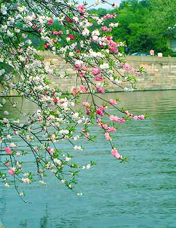 杭州西湖早在唐代已广栽桃花,如西湖沿岸、苏堤、白堤,一株杨柳一株桃,桃花问柳花。