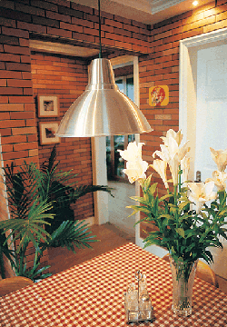 餐厅:享受美食的甜蜜空间,其布置的好坏直接影响到食欲,需要特别注意。餐厅的绿化分为餐桌周围及桌上。由于现代餐厅与客厅大都在一个空间下,采取开放式设计,因此可考虑用一些大型植物来做空间区隔。而桌上的绿化植物不宜太大,小巧的观叶植物较合适,或是单束鲜切花。较易落叶的花或有花粉多的植物最好不选。