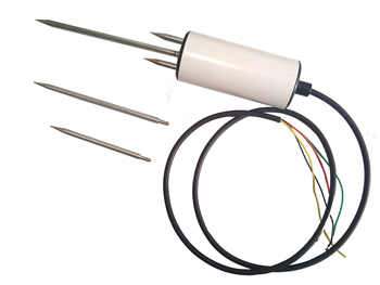土壤水分传感器由不锈钢探针和防水探头构成,可长期埋设于土壤和堤坝内使用,对表层和深层土壤进行墒情的定点监测和在线测量。与数据采集器配合使用,可作为水分定点监测或移动测量的工具(即农田墒情检测仪)。