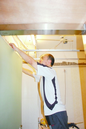 厨房有窗,吃饭不用开灯。 节电 餐桌搬进厨房吃饭不再开灯 老段家的房子是在1998年装修的,抽油烟机将厨房的窗户挡去了大半。在节能设计时,老段将原来被抽油烟机挡住的窗户全部露出来,加了一张可以折叠的餐桌,“在厨房装修的设计中要提前考虑采光的问题,这样一年的绝大多数时间里做早饭肯定不用开灯了。” 老段拿出改造前的照片,在照片中,洗衣机冰箱都在厨房中占据着自己的位置,“把洗衣机和冰箱搬出厨房后,我们把餐厅搬进了厨房。以前我家的餐厅没有自然光可采,每次吃饭必须开灯。现在可以达到几乎三餐都不用开灯。”老段设计的橱柜将洗菜盆和切菜的位置放在靠窗的位置,煤气灶放在最里边。“我这样做不但有效地利用了自然光源,对于厨房排烟也是最好的。” 老段将厨房的改造看作得意之笔,他本想做一个L形的橱柜台面当餐桌,最终因没找到施工方而放弃,“厨房只有5平方米,人家嫌活儿小,没人愿意干。” 老段只好自己动手改造,最终决定在暖气上面改造餐桌,他上班前量好尺寸,下班后到建材市场买铁管,一干就经常到午夜12点。一次,老段计划第二天改水路,就不能用洗衣机了,他的爱人周玉英担心改造时间长,想洗洗攒下的衣服,周玉英设置好洗衣机就去睡觉了。半夜一点多,老段发现屋子里跑水了,“改管道时移动了一下洗衣机,将排水管碰松了,结果排水时脱落。第二天一早楼下的就找上门来说‘晚上下雨了’。”老段看到水淹了他们的客厅和一间卧室,此后他一边装修一边谈赔偿。“有一天突然又接到楼下来的电话,心头不由一惊,心想不会又漏了吧。后来才知道邻居这次是想到我家来参观,比照我家来装修。” 周玉英也从起初的不太支持变成了老段的帮手,夫妻俩一起改造着厨房,“他平时都不喜欢到厨房,现在他特喜欢去,就是个阳光餐厅,吃饭的时候还能看看电影。”周玉英指了指立在桌子上的笔记本电脑。