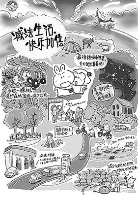 峡湾冬天无冰,北极熊则因天暖而无法冬眠,北方许多候鸟忘了南飞。过去这个季节,阿尔卑斯山冰雪皑皑,今年却是野花盛开。全球气候变暖正逐步影响着我们周围的一切,并终将影响人类自己。习惯于加法生活的地球公民们 ,是否应该为减轻地球负担做点什么呢?不久前,中国绿化基金会等单位向公众发出“减法生活倡议”——