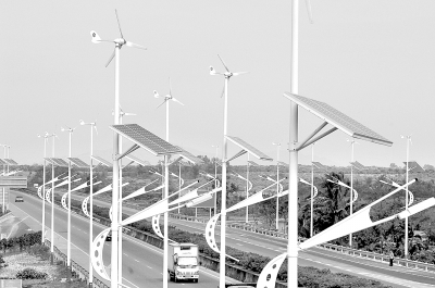 海南三亚市海棠湾的“风-光互补”节能路灯。 新华社记者 赵颖全 摄