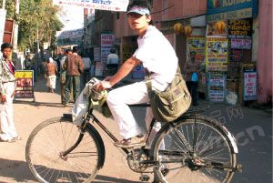 在背包客聚居的泰姬陵周边地区可以方便地租到自行车,不用人找车,车子会主动来找你。可惜这里没有山地自行车,都是那种28型,中间架一根横梁。这种车型从上个世纪90年代中后期就已经在中国大城市中销声匿迹。虽不时尚,却很好骑,毕竟轮子大,蹬一脚走好远。