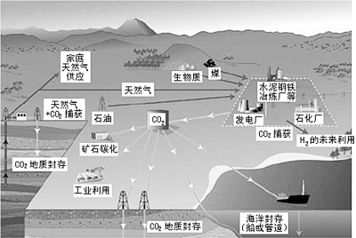 二氧化碳利用与封存示意图