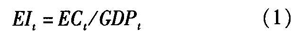 能源强度,又称单位GDP能耗,指一定时期内一国或地区生产一个单位国内生产总值所消耗的一次能源数量,是衡量低碳经济发展的重要指标,其计算公式可表示为: