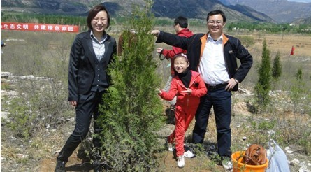 “妈妈,你快帮我扶着树苗啊,我来填土。”就读于五一小学一年级年仅7岁的王馨悦小朋友冲着一旁的妈妈兴高采烈地说。馨悦妈妈告诉记者:“在前来植树的路上,她就喊出了自己的口号‘低碳家庭,从我做起’。令我们很是欣慰,因为这些话都是孩子自己想出来的,我要她从小就多接触这些环保有意义的活动,对她今后的成长也会有帮助。”