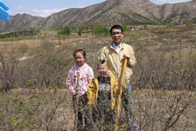 图5:陈米奇与爸爸和弟弟植树留影