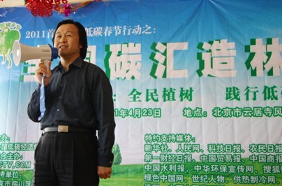 仪式上,低媒联盟张庆副理事长作了重要讲话,首先,他转达了联盟理事长王敬松教授对参与此次碳汇造林活动全体人员的问候;他表示此次活动参与人员用实际行动践行了环保低碳事业,是民众学习的榜样。同时,他还透露,在与云居寺绿化指挥部穆主任交流时,穆主任表示今后将为低媒联盟划出一块专属区域进行持续性的植树造林活动。