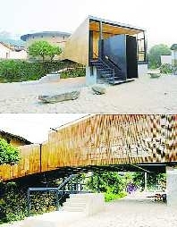 这座乡村小学不仅是一个学习场所,同时也是公众举行聚会的地方,此外还充当一座桥,横跨河流之上。这所小学有两个教室,竹桥连接两座乾隆年间的土楼。天气合适的时候,打开竹子百叶窗,学生可享受清凉。