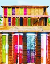 这所学校使用的彩色百叶窗采用手工制造,通过打开和关闭百叶窗控制室内照明和通风,因此这座建筑看起来既美丽又有趣。