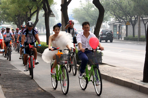 第六个世界无车日 新人流行低碳婚礼