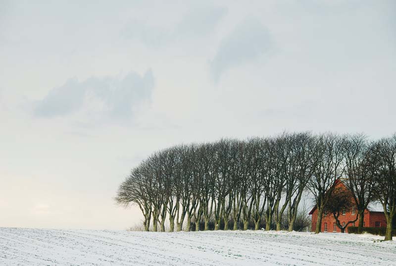 丹麦萨姆苏岛上常有大风,当地用树做屋屏风。
