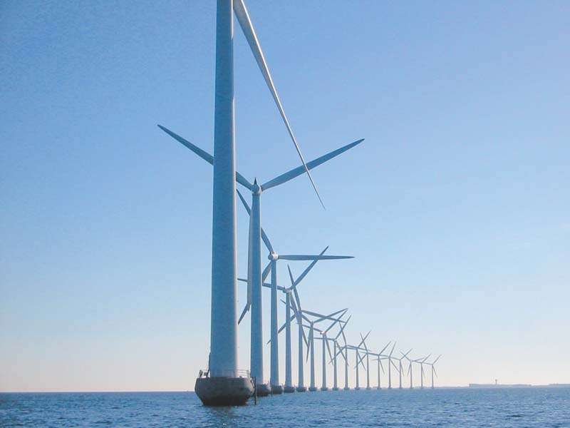 丹麦大力发展风能,图为海上的风机列阵。