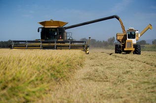图片说明:加州玛丽斯威尔附近的农场正在收割水稻。