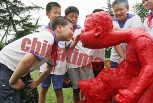 昨起,77件环保雕塑在北京海洋馆四周展出,展览以完全免费的形式向公众开放。这77件环保雕塑是从400多件来自国内外的环保雕塑作品中精选出来的。据介绍,本届“蓝色空间”雕塑展是我国第一个以保护环境、保护地球生态为主题,利用废弃物品、生活垃圾制作的雕塑艺术品,并免费向公众展出的环保雕塑展。本次展览将持续到10月中旬。■本报记者张润东/文刘新颖/摄影 [2006/8/31 1:27:11]